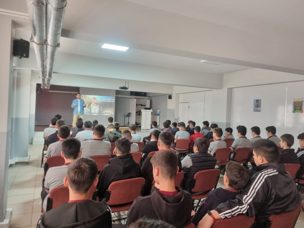 Okulumuz Rehberlik Öğretmeni Abdulkadir YILMAZ tarafından Serdar ZEREN Ortaokulu 8. sınıf erkek öğrencilerine okulumuzu tanıtım sunumu yapılmıştır. Seminer sonrasında öğrencilerimize tanıtım broşürümüz ve kalem hediyelerimiz verilmiştir. Ev sahipliği için Okul İdaremize ve Rehberlik Öğretmenimize teşekkür ederiz.
